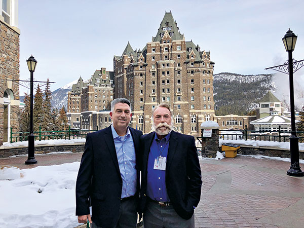 1. Reclining in the Rockies FMC’s Adam Manwarren (left) and Golfdom’s Seth Jones kick back at the Canadian Golf Course Management Conference in Banff, Alberta. (Apparently someone needs to teach Seth how to properly wear a scarf.)