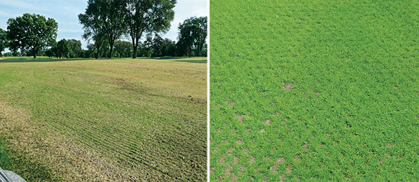 Keller and Johnson selected 007 creeping bentgrass greens and tees and used Dominant X-Treme creeping bentgrass for the courses’ fairways. Johnson says the varieties are resistant to dollar spot, snow mold and brown spot. Keller says he made sure to order fertilizers ahead of time to help the seed get off to the right start.