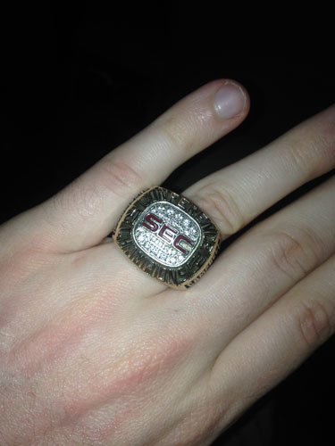 Our driver, a really nice guy, tells us his name is Marcus Campbell and he played college basketball at Mississippi State in the early 2000s. Eventually he says, “alright, I’ll show you guys this because this is ACC country and no one here appreciates it…” He proceeds to open the console next to him and pulls out a 2004 SEC Championship ring.