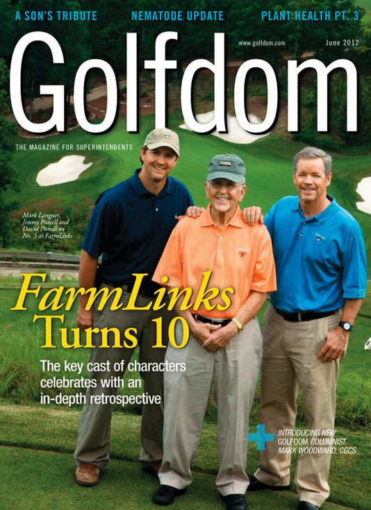 Langner appeared on the June 2012 cover of Golfdom, celebrating the 10th anniversary of FarmLinks, with FarmLinks founders Jimmy and David Pursell.