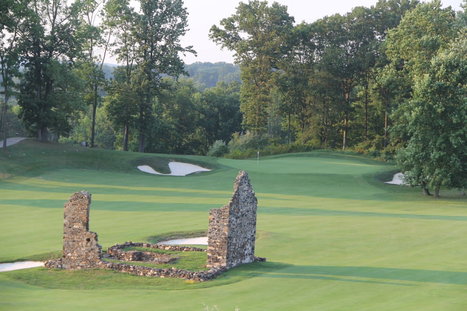 There’s an old house on the course, it sits between two holes, 14 and 16 if I remember correctly. Architect Mike Hurdzan loved the look of it, so he kept it. It’s a unique site on the course, I did take the time to look closer at it, and wonder how hard it was to build something like that before power equipment…