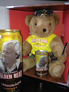 Being the editor-in-chief of a universally* adored golf magazine such as Golfdom, I happen to get some neat gifts in the mail. Case in point — this “Golden Bear” celebrating the launch of… Golden Bear Lemonade.