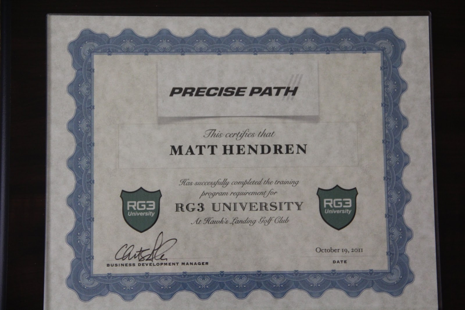 At the end of the trip I received a diploma for completing RG3 University. I’m pretty sure the RG3 diploma is on the same level as an honorary degree from Harvard or Princeton so I am now being sought out by several Fortune 500 companies!