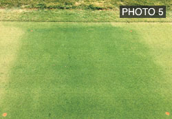 My replication was not as successful this time around. I did not see any of the foliar “staining” and leaf blight damage that happened to a fellow superintendent (Photo 4).